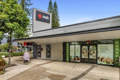 The NAB building on the corners of Griffith, Warner, and Chalk Streets in Queensland beachfront suburb of Coolangatta, could represent a great rental uplift, based on other leased bank assets in the same street.